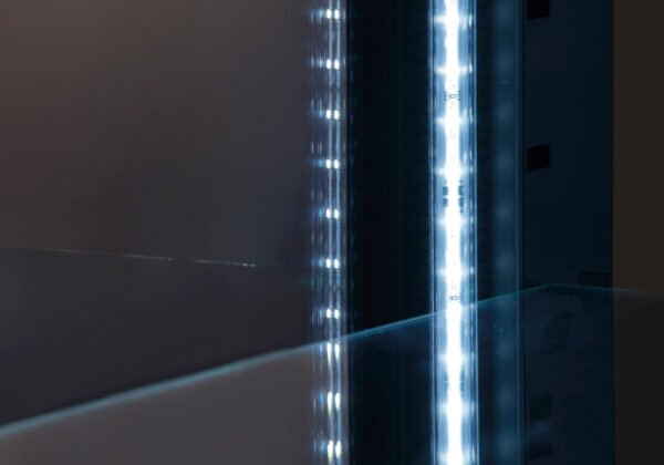 La vitrine d’exposition pour le vin RV 404B attire le regard du visiteur par son raffinement et est en même temps capable de s’adapter à tout contexte grâce à sa discrétion. Ce modèle avec porte unique de 700 mm est conçu pour mettre en valeur les produits exposés à l’intérieur grâce à ses 4 côtés en verre panoramique avec sérigraphie noire, ses 2 étagères en métal et ses 4 lumières LED internes. En classe énergétique A, la RV 404B est équipée d’un thermostat numérique avec connexion Wi-Fi qui permet de surveiller et de réguler la température intérieure depuis un smartphone ou une tablette.
